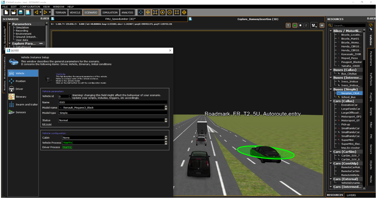 使用 Foundation Pack 可将外部车辆模型连接到 SCANeR
