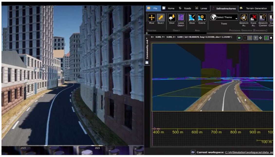 自动化的环境生成使用户无需繁琐的手动搭建,即可探索多样化场景与条件,快速创建贴合车辆仿真需求的多变地形与语境环境。